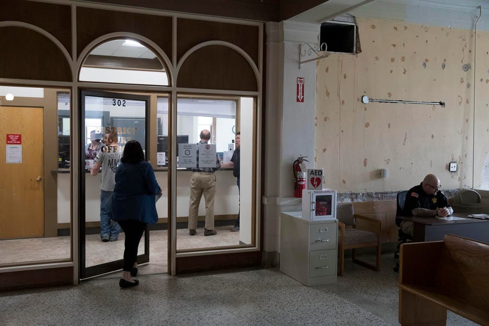 Frente al Juzgado del Condado de Grant, en Ephrata, WA. (Fotografía de Matt McKnight/Crosscut)