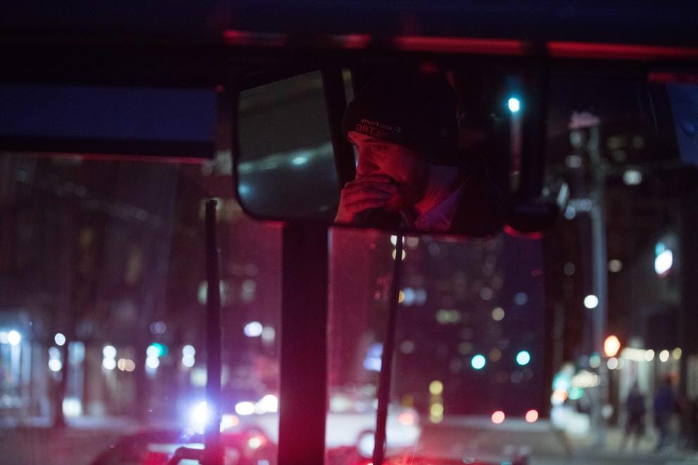 At the beginning of his shift, McClure takes over the No. 60 route on Beacon Hill, near the light rail station. From about 4 p.m. to just after 8 p.m., he guides the bus south to Georgetown, South Park and White Center. He takes a quick break at Westwood Village — about 25 minutes, if the route was on time; less for every minute the bus was behind schedule — and loops back. He then drives north to Capitol Hill before returning to where he began, wishing passengers “have a great day” along the way.