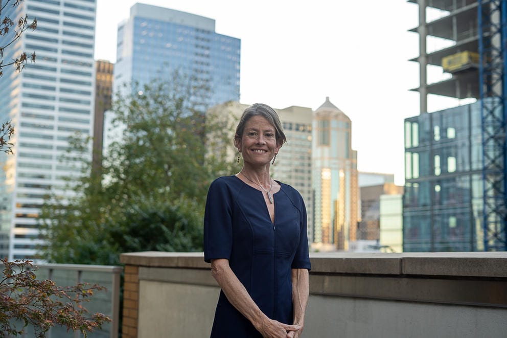 Sara Nelson, District 9 candidate for Seattle City Council, in downtown Seattle on Sept. 21, 2021. (Chloe Collyer for Crosscut)